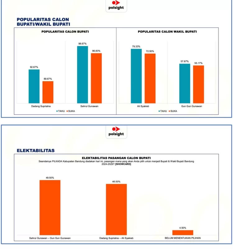 “Pada simulasi elektabilitas, pasangan Sahrul–Gun Gun unggul dengan angka 49,50 persen sementara pasangan Dadang–Ali Syakieb hanya mendapatkan suara sebesar 46,00 persen," katanya.